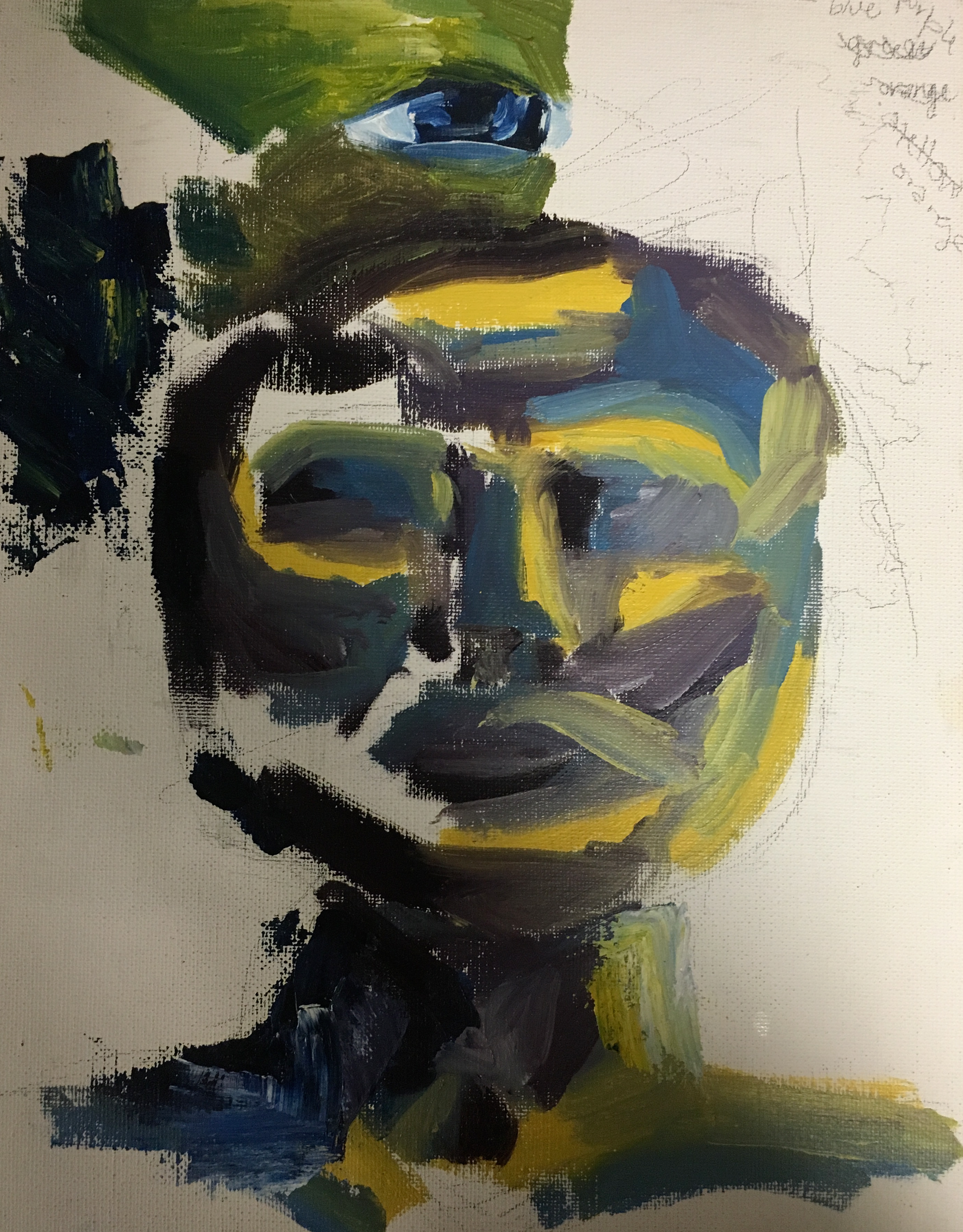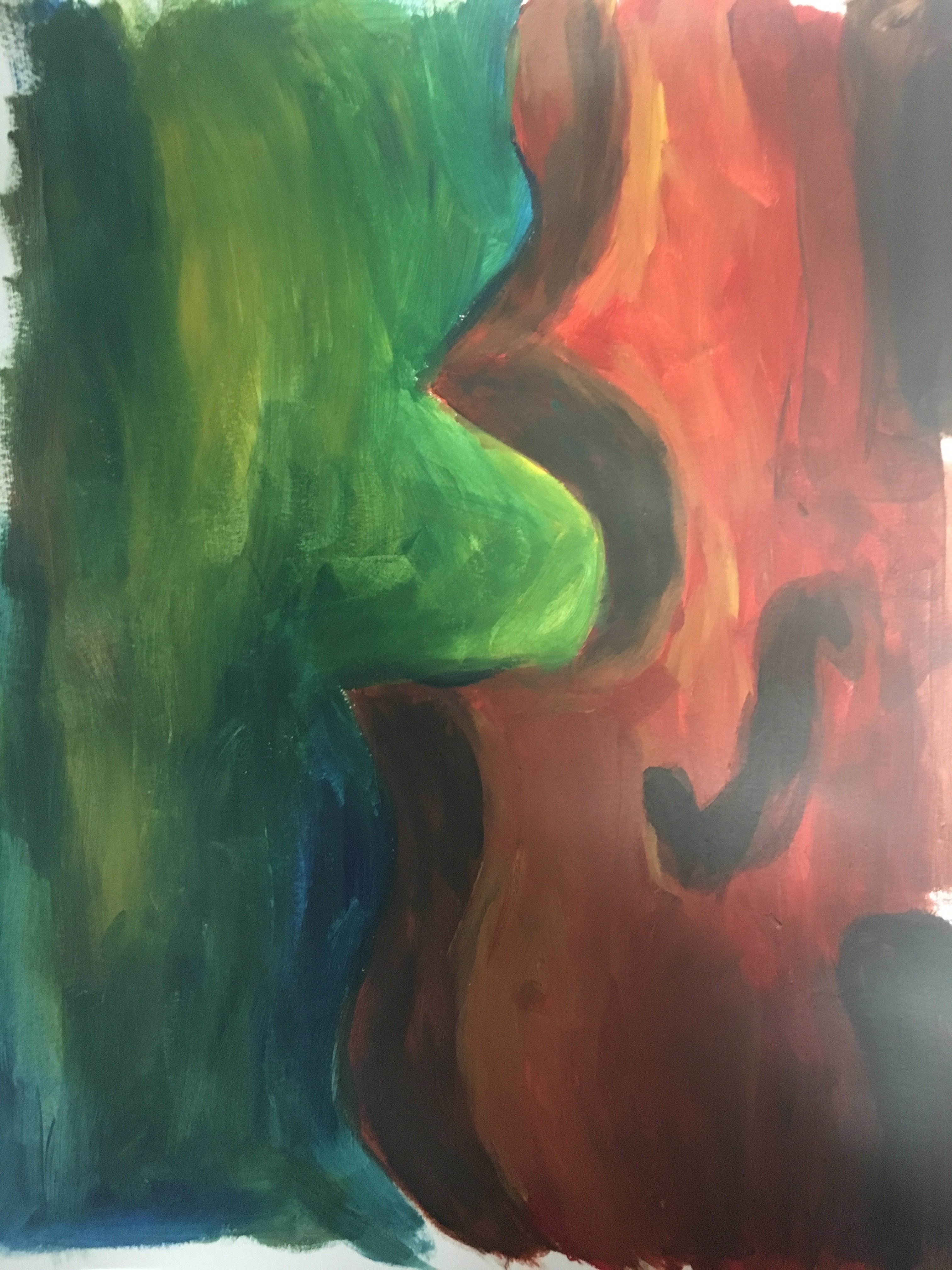 Inspired by Cayce Zavaglia, I created Double Feature as a comment on society’s repression of people’s identity. With the rise of social media, a standard for how to present oneself has been set. The right half of the face represents the simplified identity of a person after societal pressures, while the left side of the face symbolizes one’s true identity and individuality. The abstract streaks of paint in the background represent the need for people to break out of the standards pushed upon to them.