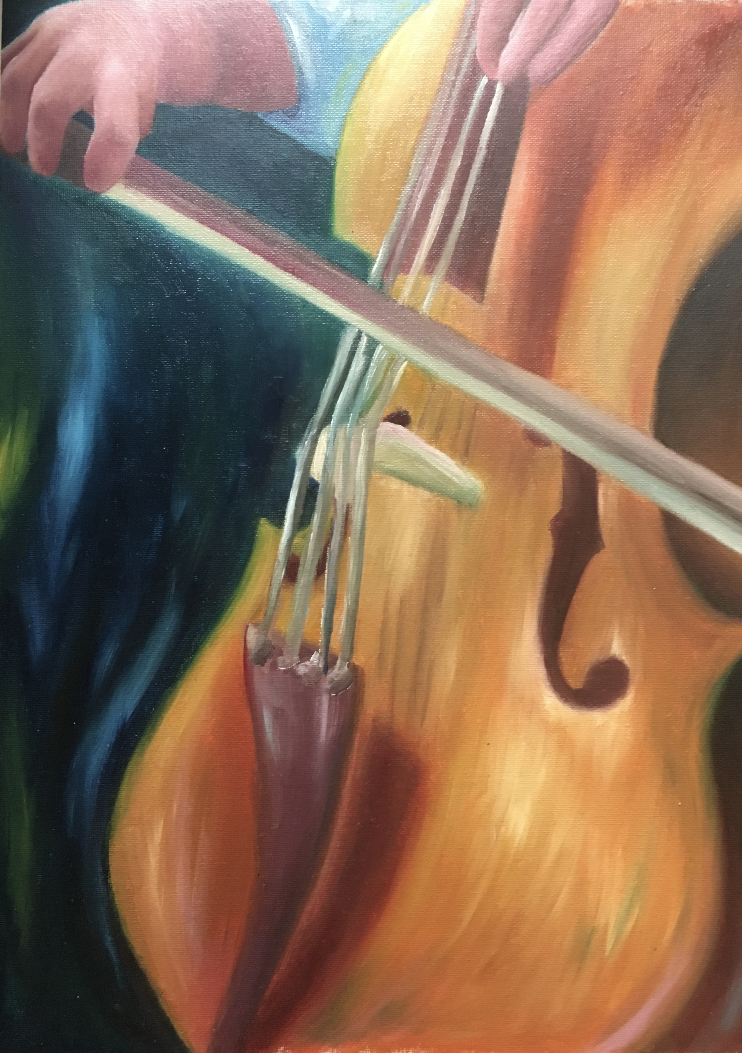 Throughout my life, the idea that one must be a “triple threat” and the best of the best in order to make it has been stressed. This has created a pressure to be perfection, something that I have felt heavily throughout my youth, and that I know my peers have experienced as well. This piece shows a person playing cello, an instrument I currently play. The dark background represents a lack of audience. Combined with the title, I aim to express the worry of constantly putting forth effort to not be recognized or acknowledged.