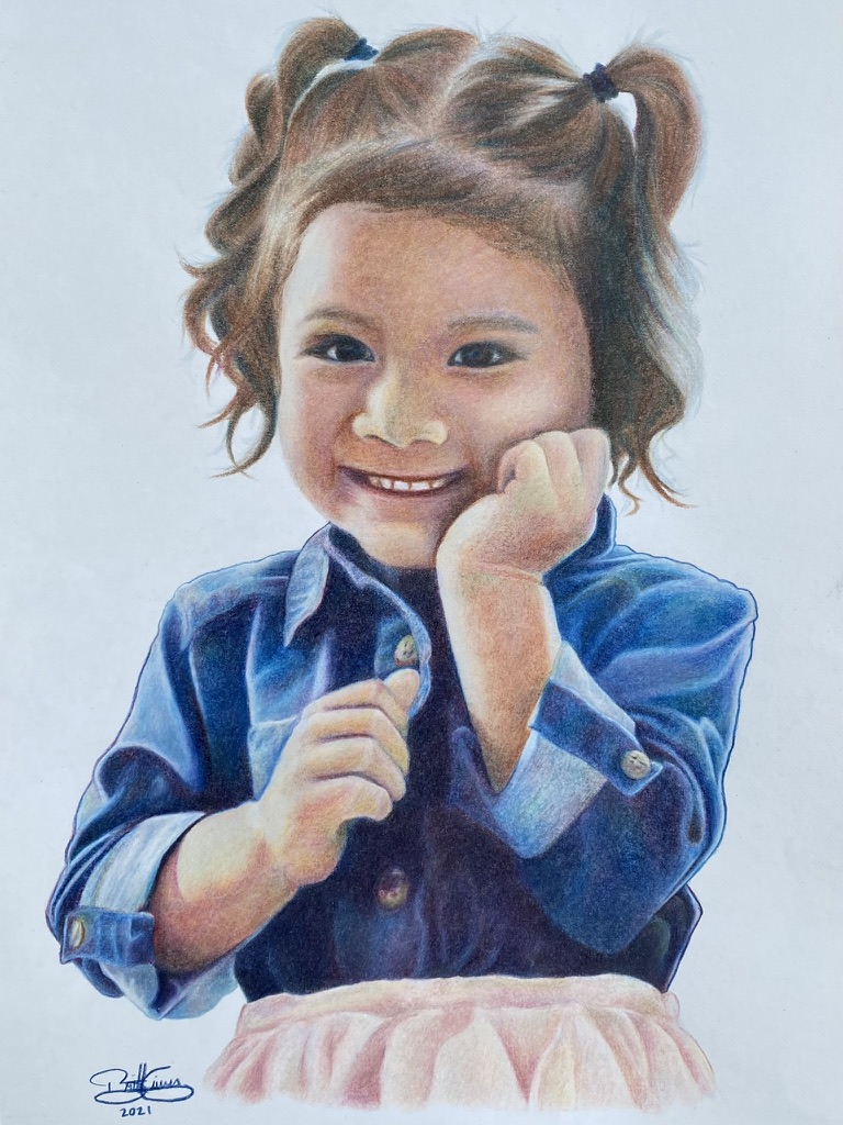 My first commissioned work, My Sweet Thing is a portrait of my friend’s daughter. This piece is special to me because it is the first time I have given my art away, which was something I could not imagine doing in high school. This was also my first time doing a full colored pencil piece, and I could see how much I had progressed in technique and confidence since my earlier works.